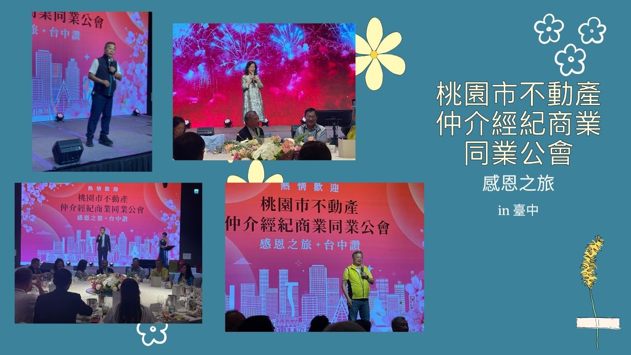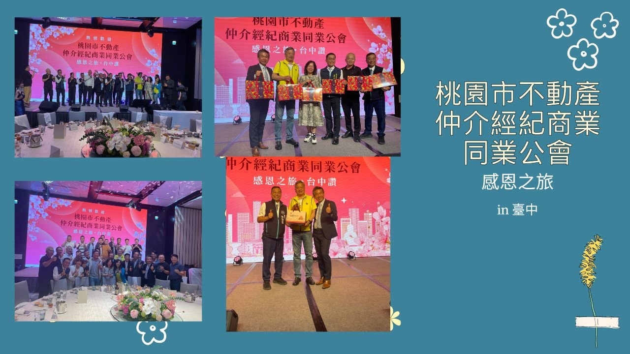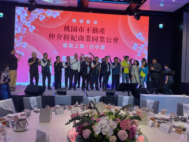 4/9晚間,桃園市不動產仲介經紀商業同業公會由徐本清理事長與蕭順治理事長率領理監事團隊,展開感恩之旅來到台中。在臺中勤美洲際酒店,與桃園公會的好朋友們進行了一場深度交流聯誼。現場氣氛熱絡,分享市場脈動,更針對不動產經紀業的未來發展交換了寶貴見解。