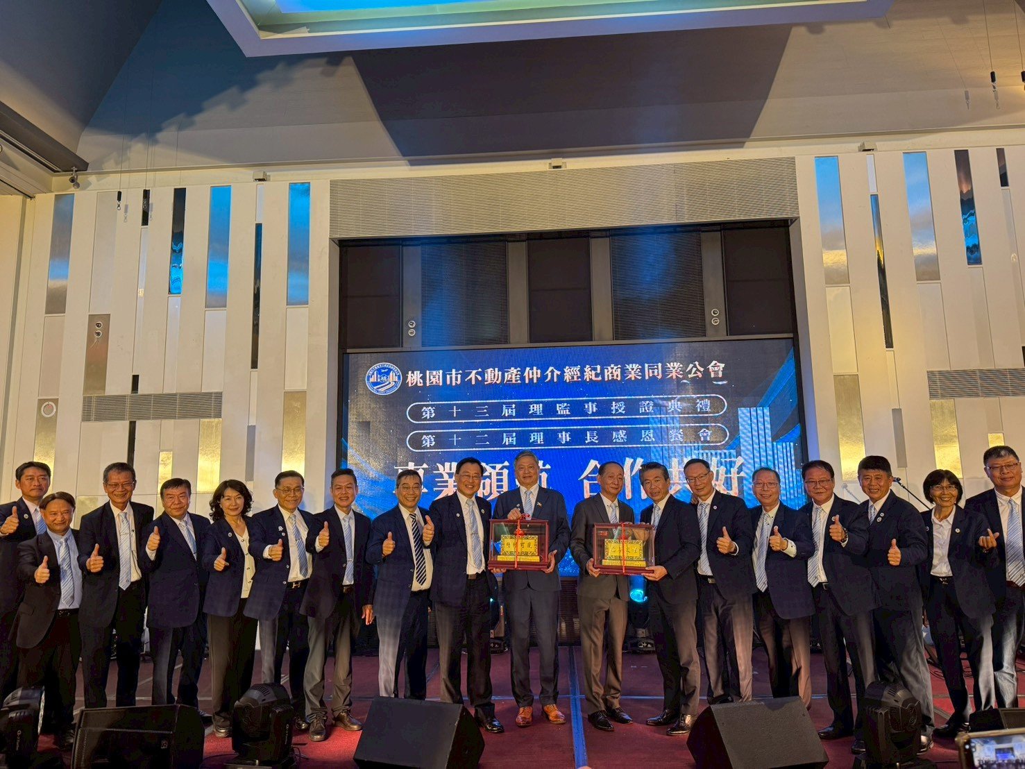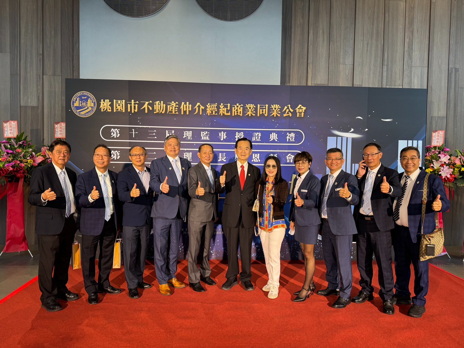 「桃園市不動產仲介經紀商業同業公會」第13屆理事長暨理監事授證職典禮。由林志雲理事長、林正雄名譽理事長、林金雄名譽理事長、吳本源輔導理事長,以及賴坤成、楊勝閔、謝坤志三位副理事長共同出席,獻上誠摯的祝福。恭喜桃園公會徐本清理事長帶領的新任團隊接下重任,更感恩蕭順智理事長團隊於任期內勞苦功高的付出,相信在大家的努力下,產業將邁向更專業、更透明的新里程!